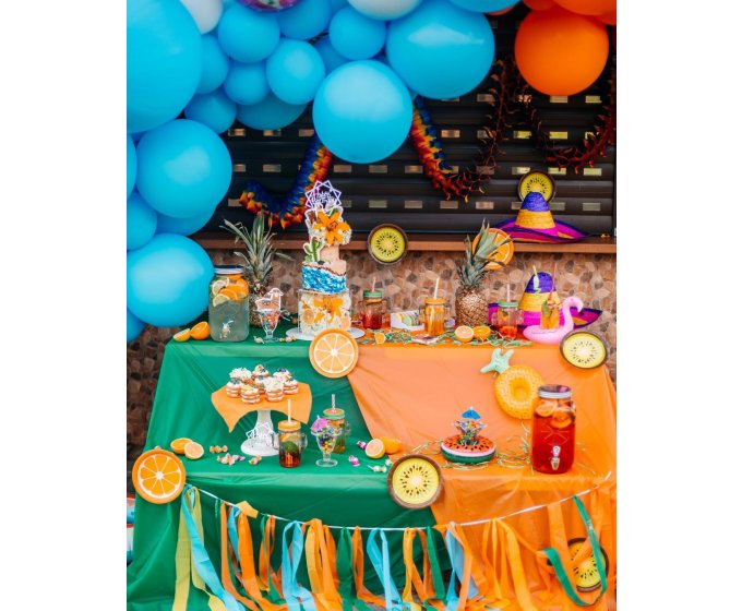 Для праздничной атмосферы декорировать нужно не только помещение, но и стол, где малышам будут подавать угощение – фрукты, сладости или праздничный торт. Если добавить немного декоративных элементов и деталей, выбрать оригинальную посуду и салфетки, скатерти, ощущение праздника усилится и ребята будут в восторге.